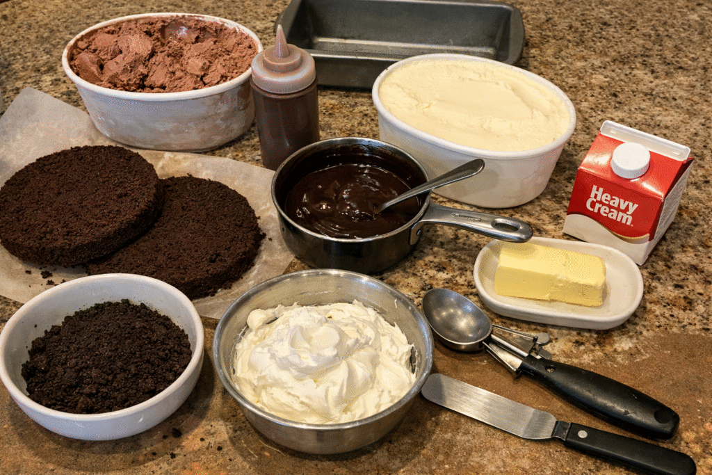 Although this dessert looks dramatic, making a Hot Fudge Ice Cream Cake Slice becomes manageable when broken into clear stages. Therefore, follow this detailed guide step by step.