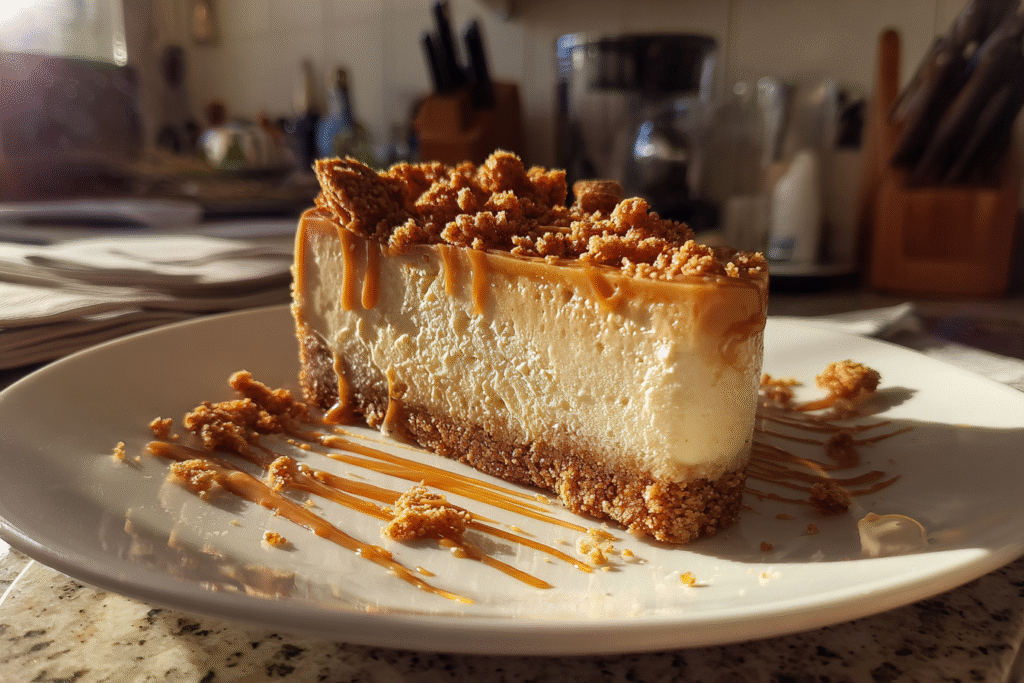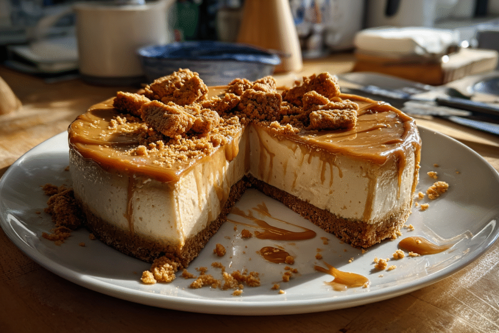 To complement the rich flavor of the cheesecake, serve it alongside fresh berries, which provide a refreshing contrast. Likewise, pairing it with a warm cup of coffee or a spiced chai enhances the caramelized cookie flavor beautifully.