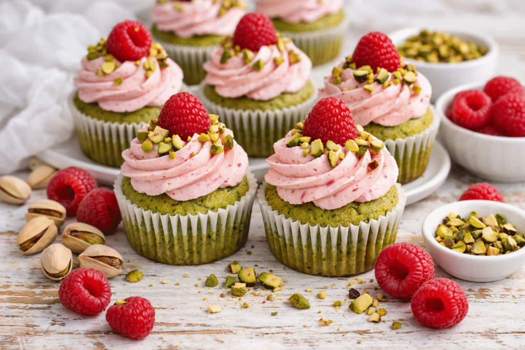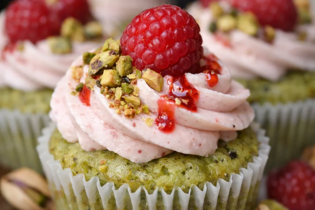 In conclusion, Pistachio Raspberry Cupcakes are a beautiful blend of elegance and comfort. From their soft pistachio crumb to their bright raspberry accents and creamy frosting, every element works together to create a dessert that feels special without being complicated. Moreover, their balanced flavor makes them appealing to a wide range of tastes.