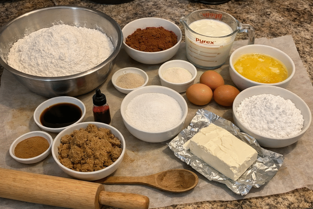 Choosing the right ingredients is essential for perfect Red Velvet Cinnamon Rolls; therefore, each component plays an important role in texture, flavor, and appearance.